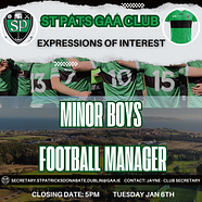 Best of luck to the Dublin U20 footballers who play Wicklow in the Leinster U20 Football Championship on Thursday and to StPats players, Kieran Conroy and Evan Brooks who have been involved with the team this year.