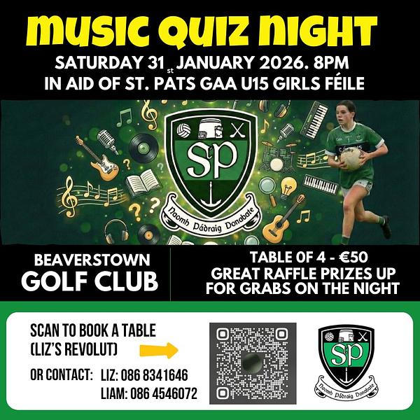 #StPatsGAA #Féile2026 #MusicQuiz #GAA #QuizNight #NewKit #SupportLocal